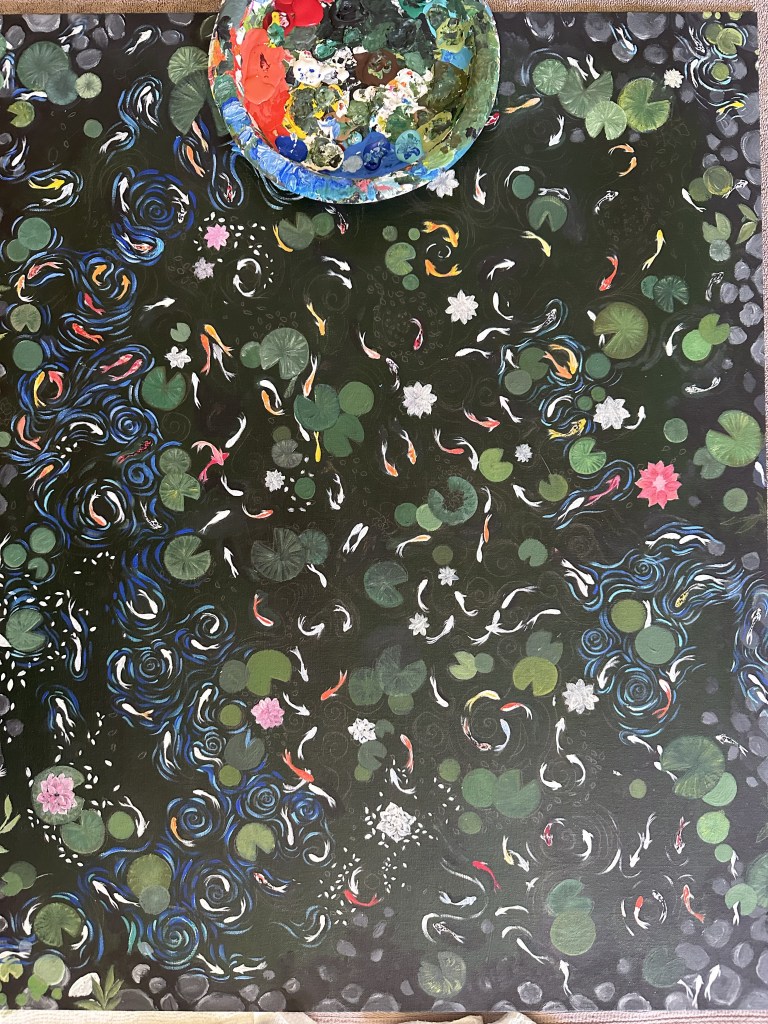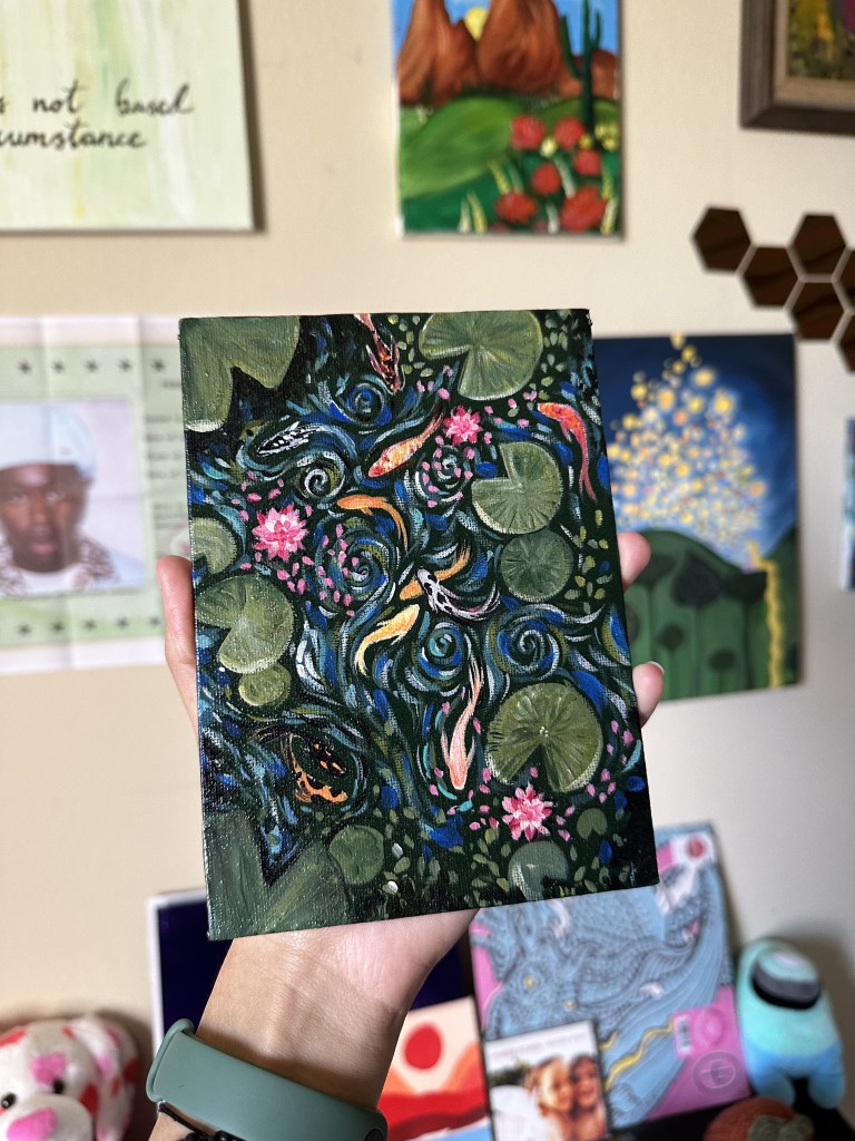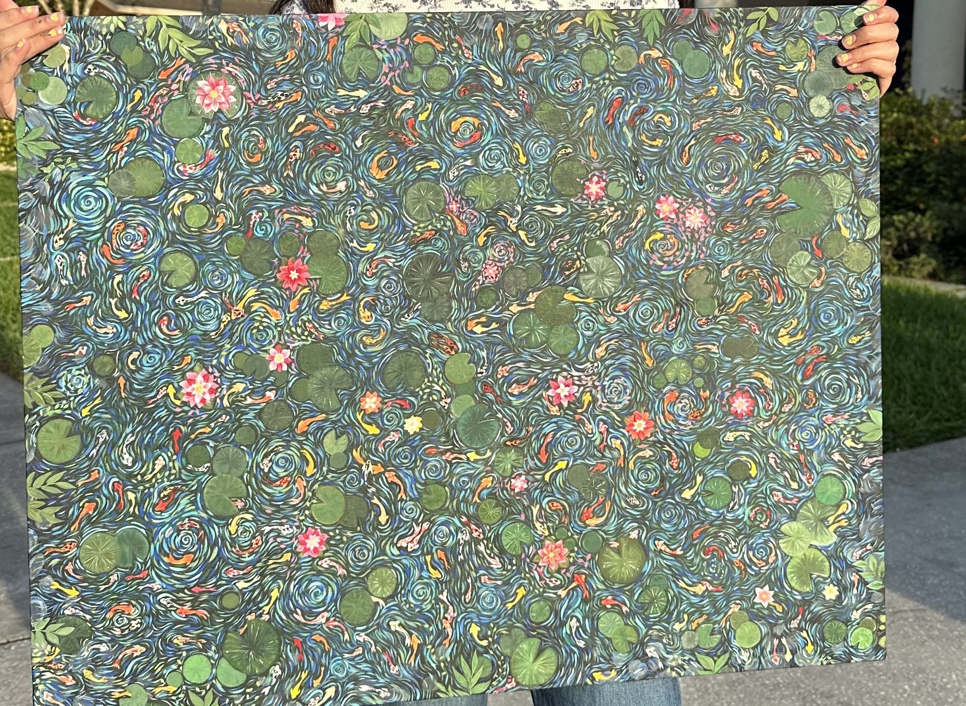 The field was a dream: tall grass, colorful flowers, and a winding stream